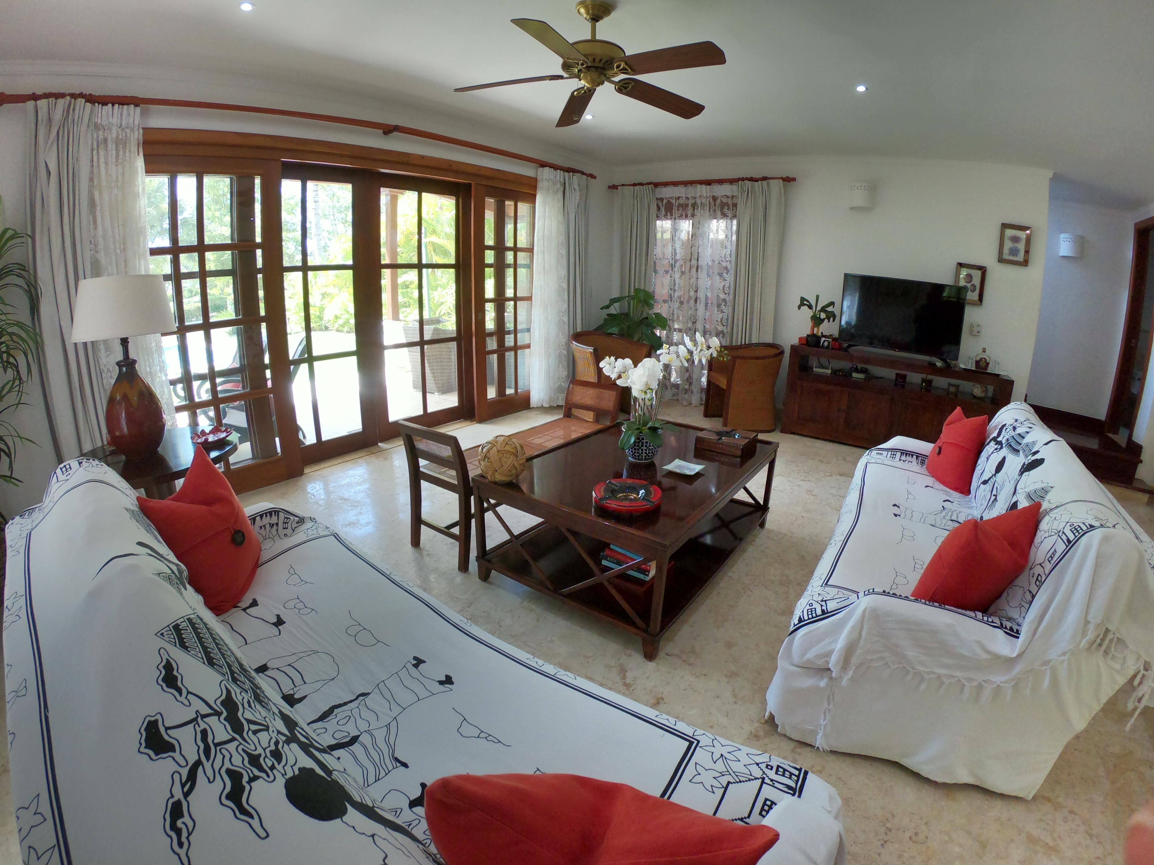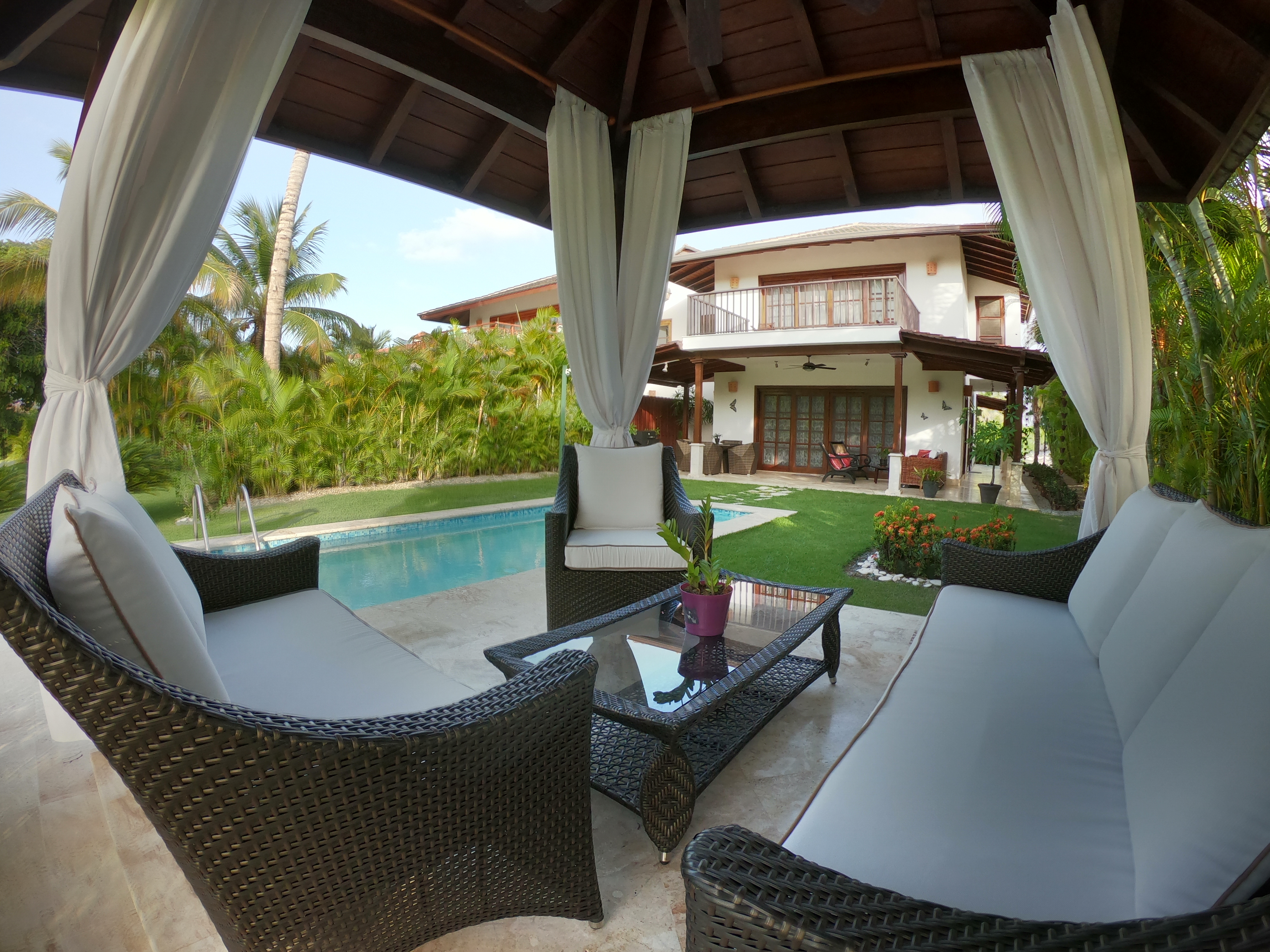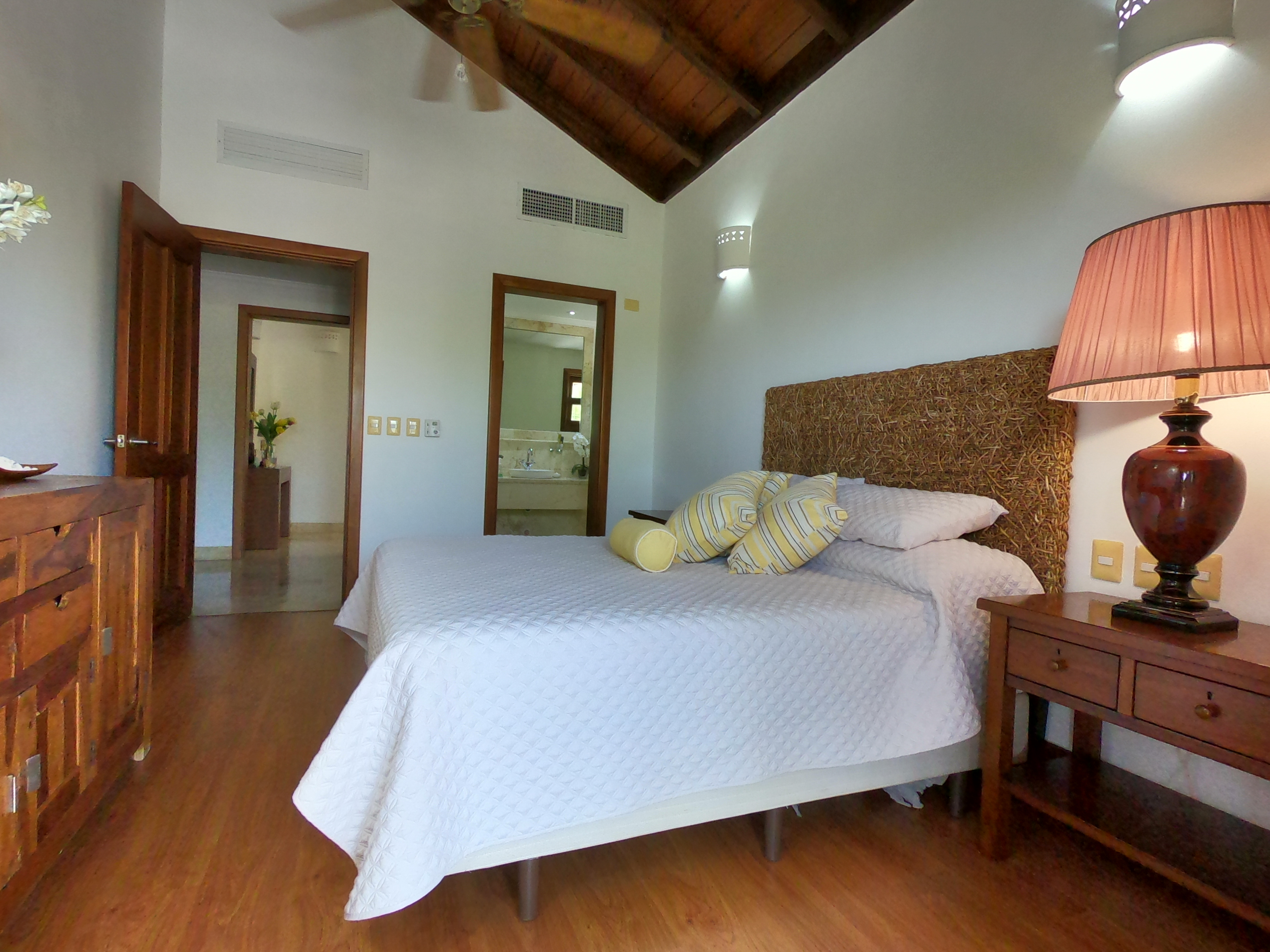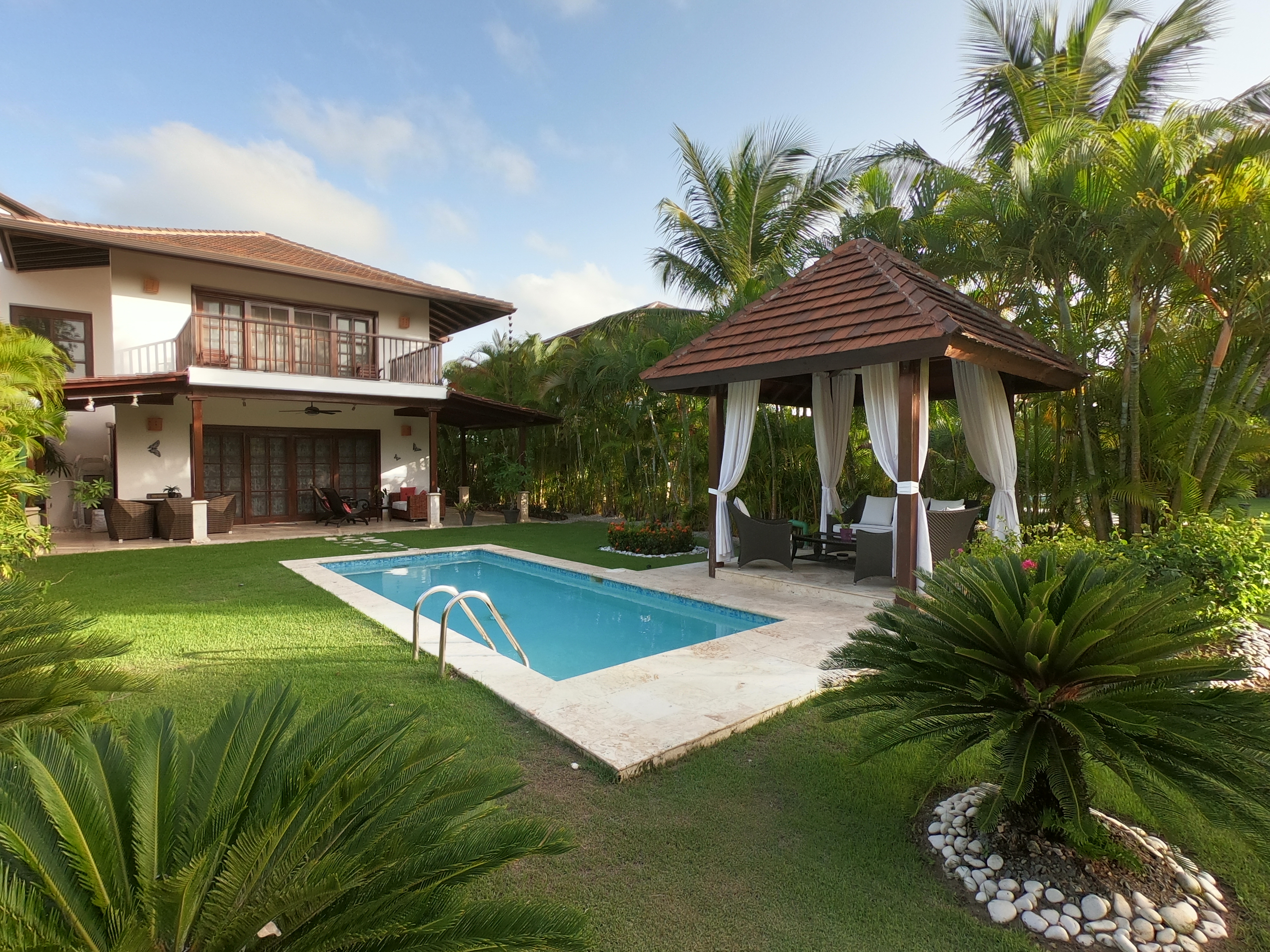 Двухуровневая вилла 350 м.кв., в карибском стиле, с 3-мя спальными комнатами, 3 ванными, большой и светлой гостиной, кухней и террасой. В каждой спальне кондиционеры, потолочные вентиляторы, шкафы. Шкафы и мебель из натурального дерева. Отдельное помещение для горничной, прачечная. Вилла находится в резиденции Кокоталь.