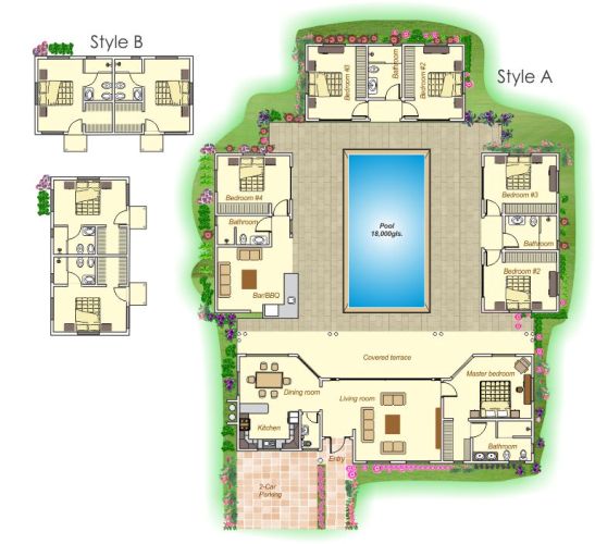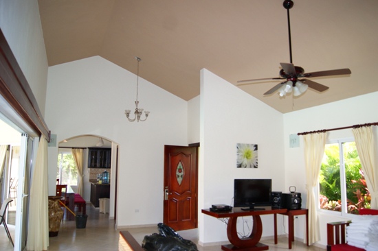 Шикарная вилла в закрытом элитном коттеджном поселке в Сосуа. Площадь виллы 337 м.кв. и она состоит из 4-х зданий. На вилле 6 спальных комнат, просторная кухня и столовая, гостиная с выходом на террасу, вторая отдельная кухня с зоной отдыха и барбекю, 7 санузлов. Каждая комната имеет свой отдельный выход на террасу и к бассейну. Европейская отделка, материалы высокого качества, американская сантехника. Участок земли 1200 м.кв. с тропическим садом. Большой бассейн с баром + джакузи, три парковочных места. Также отдельно стоящий сервисный домик с кладовой и прачечной. Вилла находится на территории элитного коттеджного поселка, в 1 км от океана. На территории два ресторана, охрана 24 часа, видеонаблюдение, пропускной въезд. Территория красиво оформлена красивыми цветущими садами, есть теннисный корт, минимаркет, сервисная служба. Служба аренды предлагает выгодные условия для собственников с гарантированным доходом 10% годовых. Коммунальный платеж с виллы 280$ в месяц. Цена 395 000$