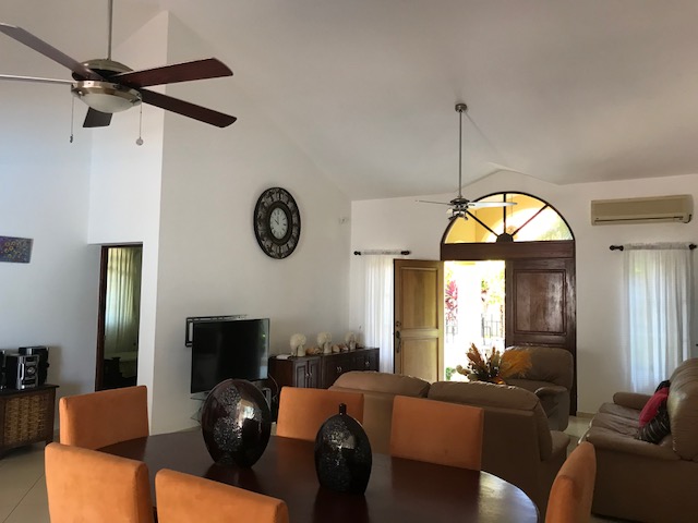 Уютная вилла с высокими потолками сводами, площадь 220 м.кв. с 3-мя спальными комнатами, 4 ванными комнатами, гостиной, большой и хорошо укоплектованной кухней и большой террасой для отдыха. Продается с мебелью и бытовой техникой, кондиционеры в спальнях. Вилла расположена в закрытой резиденции в Кабарете у океана. Участок земли 854 м.кв. с тропическим садом, бассейном и джакузи. Парковка. Все соседи иностранцы. На территории поселка два ресторана, минимаркеты, школа йоги, большой парк для прогулок, пляжи. Коммунальный платеж составляет 150 дол в месяц. Цена 235000$. Ипотека по паспорту