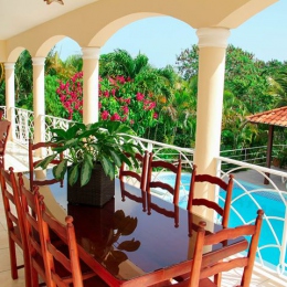 Продажа дома, расположенного в жилом и зеленом районе Сосуа, в 2.5 км от океана. Площадь дома 220 м.кв., новый ремонт, три спальни, 2 санузла, гостиная и большая терраса. Шикарный сад с цветами и пальмами. Участок 1200 м.кв., бассейн, парковка, беседка для отдыха возле бассейна. Все коммуникации. До центра Сосуа 5 минут. Вид на океан и горы. Цена 210 000$