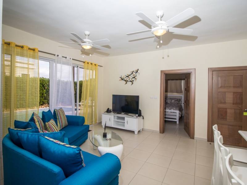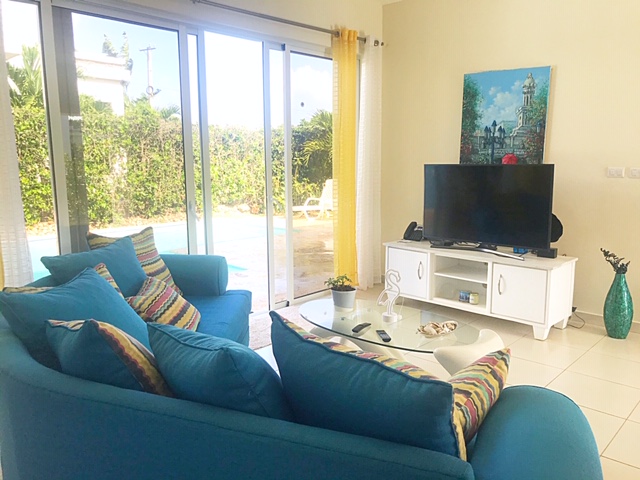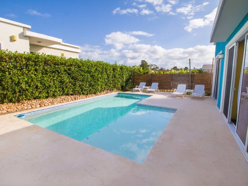 Новый коттедж 120 м.кв. в популярном коттеджном поселке в Сосуа со своей инфраструктурой. Расстояние ддо океана 2 км. Коттедж с 2 спальными комнатами, 2 санузлами, оборудованная кухня, крытая терраса у бассейна для отдыха и барбекю и отдельное помещение- прачечная. Участок земли 430 м.кв. с садом. Вилла полностью меблирована, кондиционеры в спальнях, потолочные вентиляторы. На участке парковка. Территория резиденции с круглосуточной охраной, рестораном, аквапарком, теннисным кортом, минимаркетом . Цена 170 000$