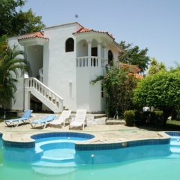 2-х этажная светлая вилла в средиземноморском стиле , площадью 230 м.кв. На 2-х этажах расположены 4 спальные комнаты, 5 ванных комнат, кухня, столовая и гостиная. Также террасы с видом на цветущий сад. Отдельное помещение для прачечной и кладовой. Два этажа внутри виллы соединяет красивая лестница и вторая лестница ведет от бассейна на второй этаж. Два входа делает удобным проживание семьи, не беспокоя друг друга. Участок земли 1313 м.кв. На участке свой бассейн и цветущий сад. Крытая парковка для машины и беседка для барбекю. Вилла расположена в охраняемой резиденции у океана в 5 минутах езды от центра Кабарете. 200 метров от океана. В резиденции два пляжа, минимаркет, большой парк для прогулок, ресторан . Цена 525000$