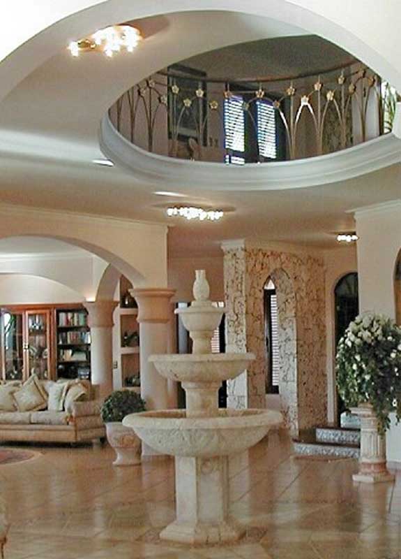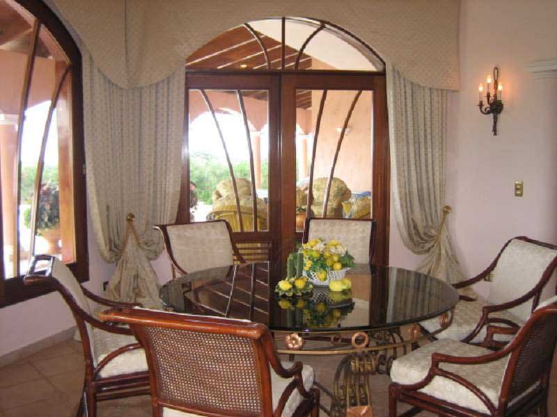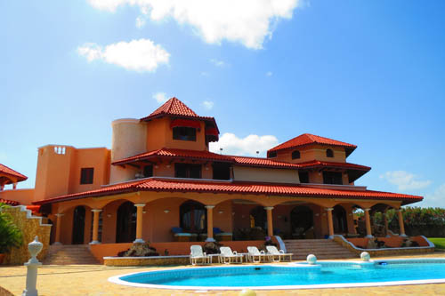 Роскошный тропический особняк занимает территорию 10 000 м.кв. Расположен на холмах курорта Сосуа, вид на океан и гору Изабель. До океана 4 км, до центра курорта 3 км. Территория с охраной 24 часа. Площадь на 3-х этажах составляет 800 м.кв. Зал выполен в мавританском стиле, с фонтаном, арками, лепниной, колоннами и стеклянным куполом. Шкафы сделаны из красного дерева, большие панорамные окна с видом на океан. На третьем этаже открытая терраса с баром. Отдельный дом для гостей с кухней, гостиной и спальней. Эксклюзивная мебель, ночная подсветка дома, бассейна и сада. Бассейн с джакузи. Гарантированная приватность, пропускной въезд на территорию резиденции. Закрытый гараж для 2-х машин и открытая парковка для гостей. В особняке работают два садовника, 2 горничные и повар. Цена 1950 000$