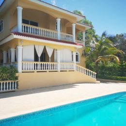Вы ищите красивый дом для себя? Этот дом для вас. Двух уровневый дом 188 м2 расположен на возвышенности откуда открывается вид на гору Изабель и океан. Вы сможете любоваться красивыми закатами каждый вечер. Дом полностью проветривается, свежий бриз вам гарантирован. Большая гостиная с кухней и большой террасой для отдыха, 2 спальни, прачечная и кладовые. Красивый рельеф. Сад с тропическими и фрутовыми деревьями ( манго, папайя, авакадо) . Бассейн и парковка для 3-х машин. Участок 1436 м.кв. Эта инвестиция сделает вас самым счастливым человеком. Поселок предлагает охрану 24 часа, ресторан европейской кухни, службу управления , детскую площадку. Всего 5 минут пешком до супермаркетов и кафе. 10 минут до пляжа пешком. Вы будете жить в тишине, но рядом со всей инфраструктурой. Стоимость 279 000$