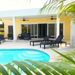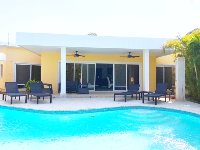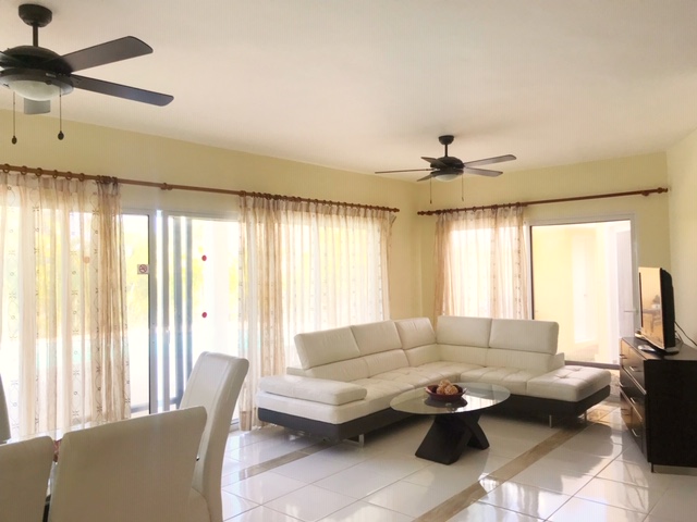 Территория элитного коттеджного поселка в Сосуа. Cовременный светлый дом площадью 150 м.кв., окна в пол, свободная планировка с 2-мя спальнями с кондиционерами, 3 санузлами, гостиной и встроенной кухней, большая терраса для отдыха. Высокое качество отделочных материалов, кондиционеры и потолочные вентиляторы, интернет, кабельное ТВ. Участок 1100 м.кв. с садом и лужайками, свой бассейн, парковка. Большая приватность, участок на возвышенности, с трех сторон нет соседей. Коммунальный платеж 230$ в месяц. На территории резиденции: два ресторана, теннисный корт, спа, минимаркет, поле для минигольфа и детская площадка. К услугам собственников: горничные, садовники, служба аренды. Стоимость дома 290 000$ .