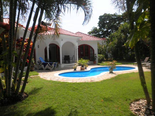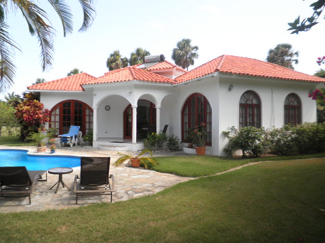 Уютная вилла средиземноморского стиля в популярном охраняемом поселке в Кабарете. Первая линия, до пляжа 50 метров. Площадь виллы 160 м.кв., полностью меблирована, кондиционеры и потолочные вентиляторы. На вилле 2 спальные комнаты, 3 ванных комнаты, гостиная, кухня и террасы. Участок земли 890 м.кв. c садом. Бассейн, парковка. В 50 метрах расположен пляж в бухте. В резиденции охрана 24 часа, ресторан, сервисная служба. Цена 395000$
