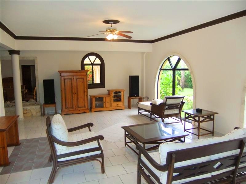 Срочная продажа виллы в Кабарете. Вилла на берегу океана. Прежняя цена 350 000$, Новая цена 250 000$. Отличное расположение, возможность наслаждаться ежедневно океном. Вилла 373 м.кв. с просторной кухней, 4 спальными комнатами, 5 ванными комнатами, терраса для барбекю, сауна. Высокие потолки, на втором этаже большая терраса для загара. Полностью меблирована, мебель из Германии, вся бытовая техника. Отдельное помещение - кладовая, крытый гараж для 2-х машин. Участок земли около 2000 м.кв. с тропическим садом и газонами. Свой бассейн. Охрана 24 часа, интернет, кабельное ТВ, бесперебойная подача электричества. Первая линия, вид на океан. Коммунальный платеж 200$ в месяц. Цена 2500000$