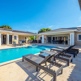 Бассейн площадью 33 м2 или 12 220 галлонов имеет солярий на 2 шезлонга, а также бар у бассейна на 3 места. Джакузи площадью 3,40 м2 или 270 галлонов оснащено системой отопления.