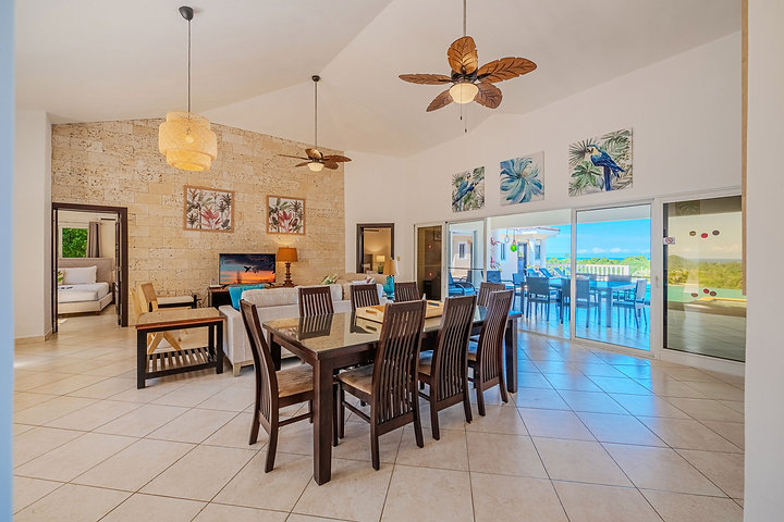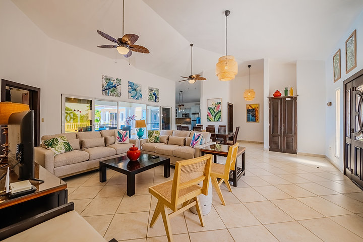 Вилла 299 м2 , с 6 спальнями и ванными комнатами, распределенные в 3 отдельных зданиях, где главный дом состоит из 3 спален, 3 ванных комнат, гостиной открытой планировки, кухни, кладовой и просторного крытого патио, которое в основном используется как обеденная зона.