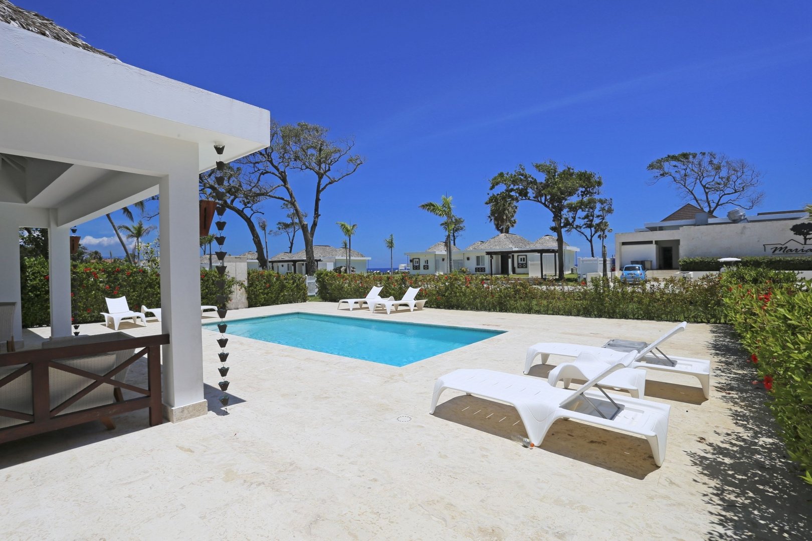Площадь виллы 176 м.кв, участок с садом 1161 м.кв. Парвковка, бассейн. На территории резиденции круглосуточная охрана, аквапарк, тренажерный зал, пляжи, три ресторана на берегу, детские площадки. Центр Сосуа всего в 7-10 минутах ходьбы.
