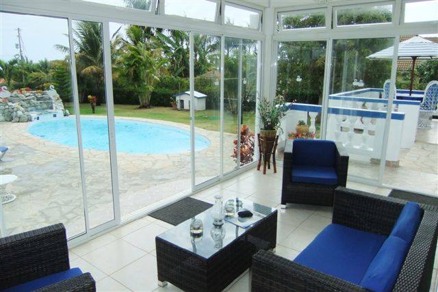 Двухэтажный дом 280 м.кв. с 5-тью спальными комнатами, 3 санузлами, гостиной и террасами, вид на океан и горы. Полностью меблирован. Дом находится в охраняемом поселке в Кабарете. До океана 2 км, до центра курорта 10 минут на машине. Резиденция расположана на возвышенности. Участок 2300 м.кв. Свой сад, бассейн, парковка, зона бербекю. Соседи американцы и европейцы. Доход с аренды от 2000$ в месяц. Цена 375 000$