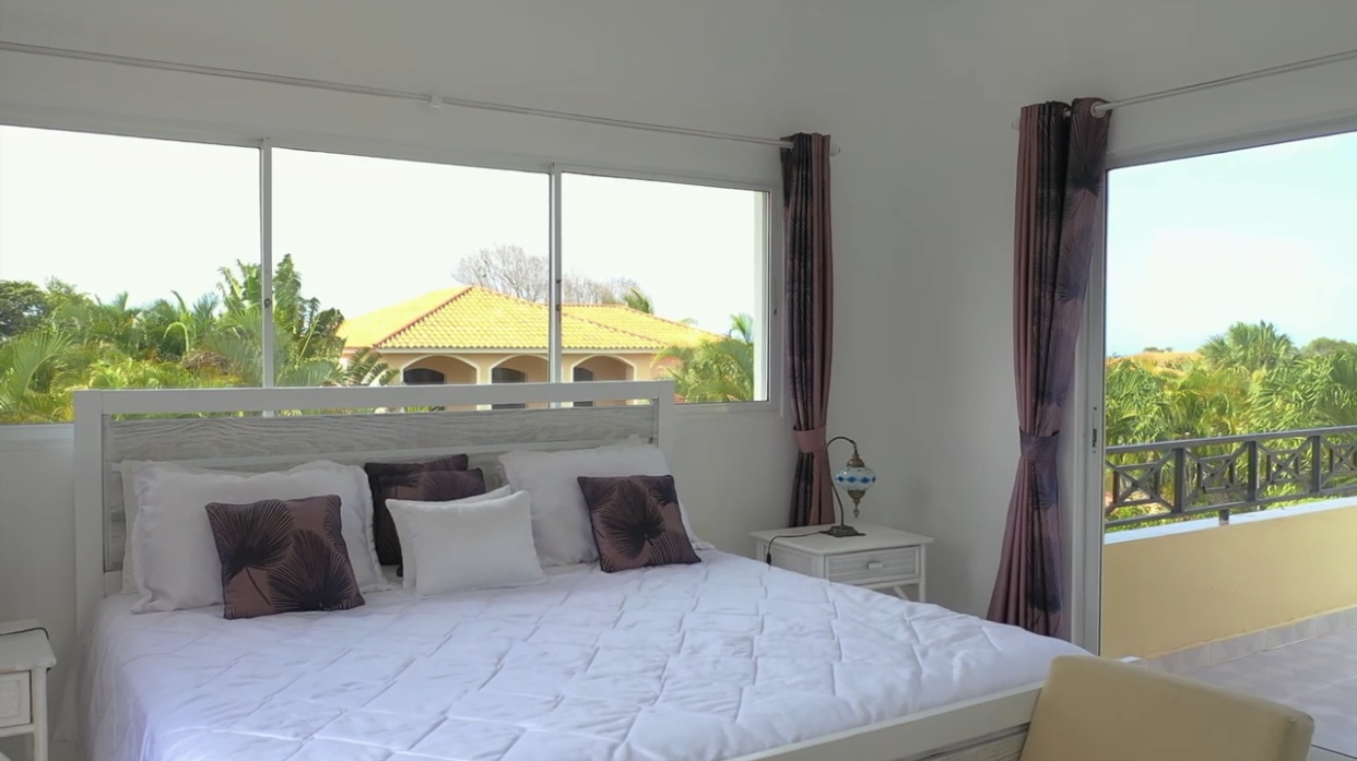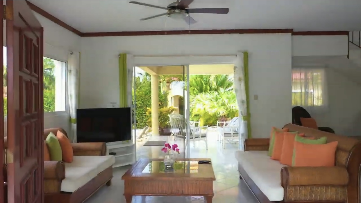 Двух-этажная меблированная вилла площадью 220 м.кв. На двух этажах расположены три спальные комнаты с кондиционерами, гостиная, светлая кухня, терраса с выходом в сад и к бассейну, 3 санузла. Пышный тропический сад 1000 м.кв. Парковка у дома. Продается с мебелью.Территория элитной резиденции в Сосуа, расположенной в 1,5 км от пляжа. Охрана 24 часа, служба аренды, ресторан, аквапарк, теннисный корт. Свой пляжный клуб с рестораном, бесплатный автобус в магазины и на пляж. Стоимость 225 000$ . Отлично сдается в аренду. Возможна рассрочка.