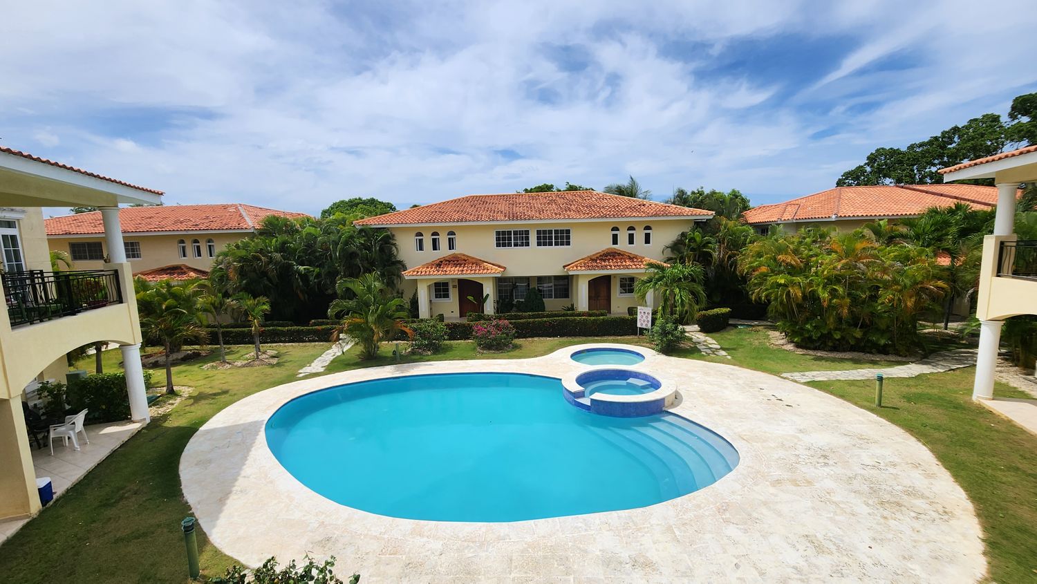 Просторная 2-х этажная квартира 97 м.кв. , 2 спальни, 2 санузла, просторная гостиная. Террасы с видом на бассейн и сад. Квартира находится на территории гольф поселка в центре курорта Баваро- Пунта Кана. Круглосуточная охрана, озера, поля для гольфа, рестораны, волейбольная площадка, теннис - все это находится на территории поселка. Также собственники имеют доступ к пляжу отеля Мелиа 5* и имеют скидки в ресторанах отеля.