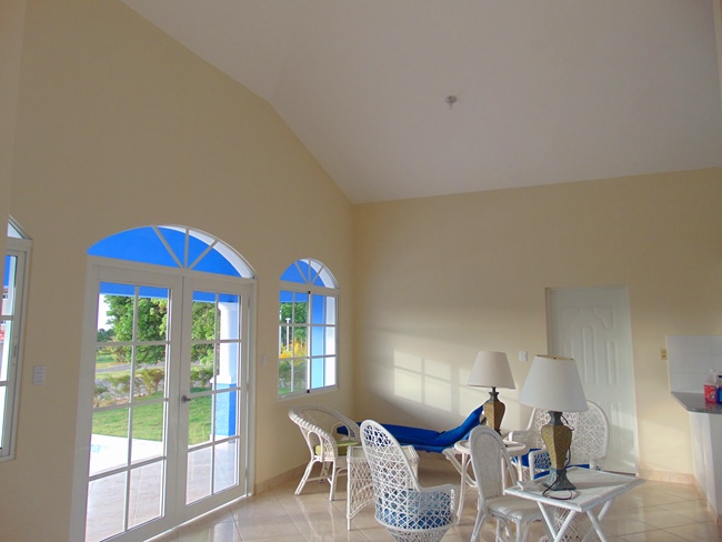 Дом 110 м.кв., 2 спальни, 2 санузла, гостиная с кухней и терраса. В спальнях кондиционеры, потолочные вентиляторы. На кухне, ванных и спальнях - встроенные шкафы, сантехника, полная внутренняя и наружная отделка, коммуникации, гранитные столешницы на кухне и ванных. Потолки- своды высотой 4,1 метра. Срок строительства дома 5 месяцев. Стоимость строительства 1000 долларов за метр кв.