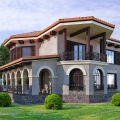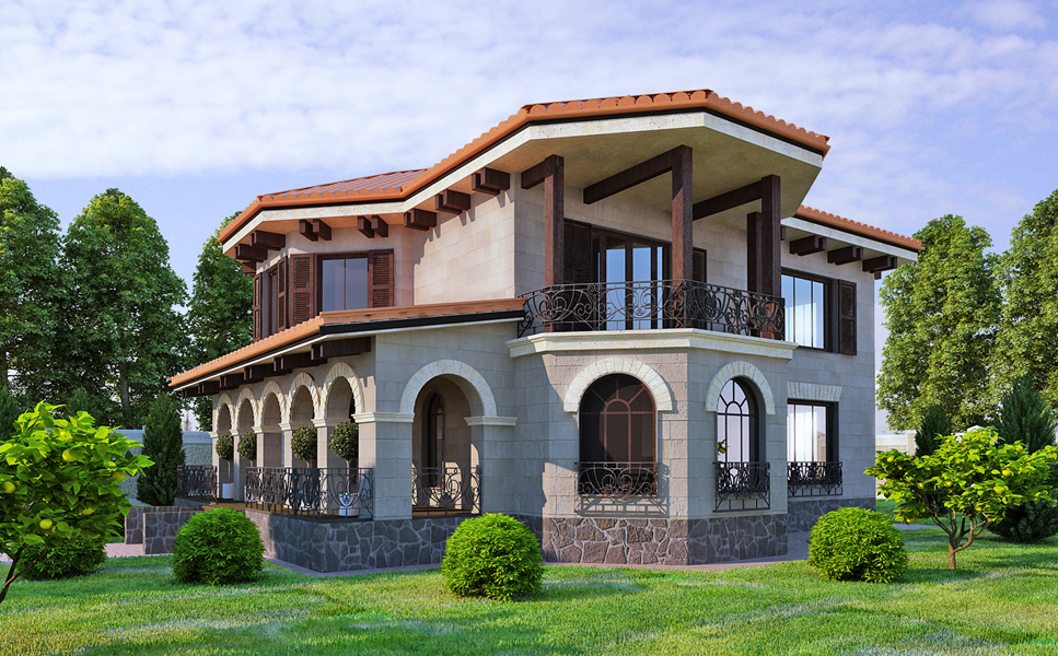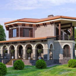 Проект 2-х этажного эффектного дома, крыша- натуральная черепица. Общая площадь 230 м.кв. Высокие потолки, на втором этаже своды, парадная лестница. В доме 4 спальни, большая гостиная с кухней, прачечная, два санузла, большая гардеробная. Большие окна дают много света в доме. Стоимость строительства 1000$ за метр кв. включает в себя полную внутреннюю и наружную отделку ( с натуральным камнем на фасадах), встроенные шкафы , кухня и все двери из натурального дерева, потолочные вентиляторы, кондиционеры в спальнях, испанская плитка на полу. Срок строительства 11 месяцев. Дополнительно оплачивается участок.