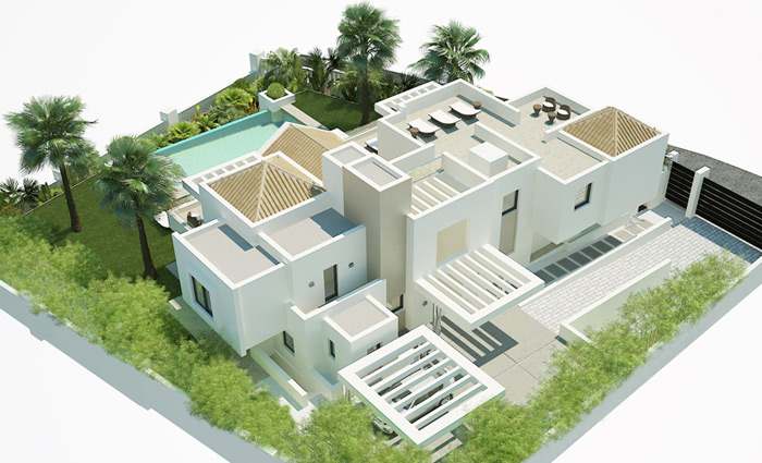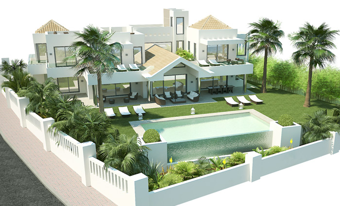 2х этажная вилла 710 м.кв. с большой гостиной, террасами, 7 спальными комнатами и просторной кухней. На верхнем этаже - солярий. Стоимость строительства "под ключ" 1500$ за метр кв. Высокое качество отделочных материалов. Срок строительства 9 месяцев.